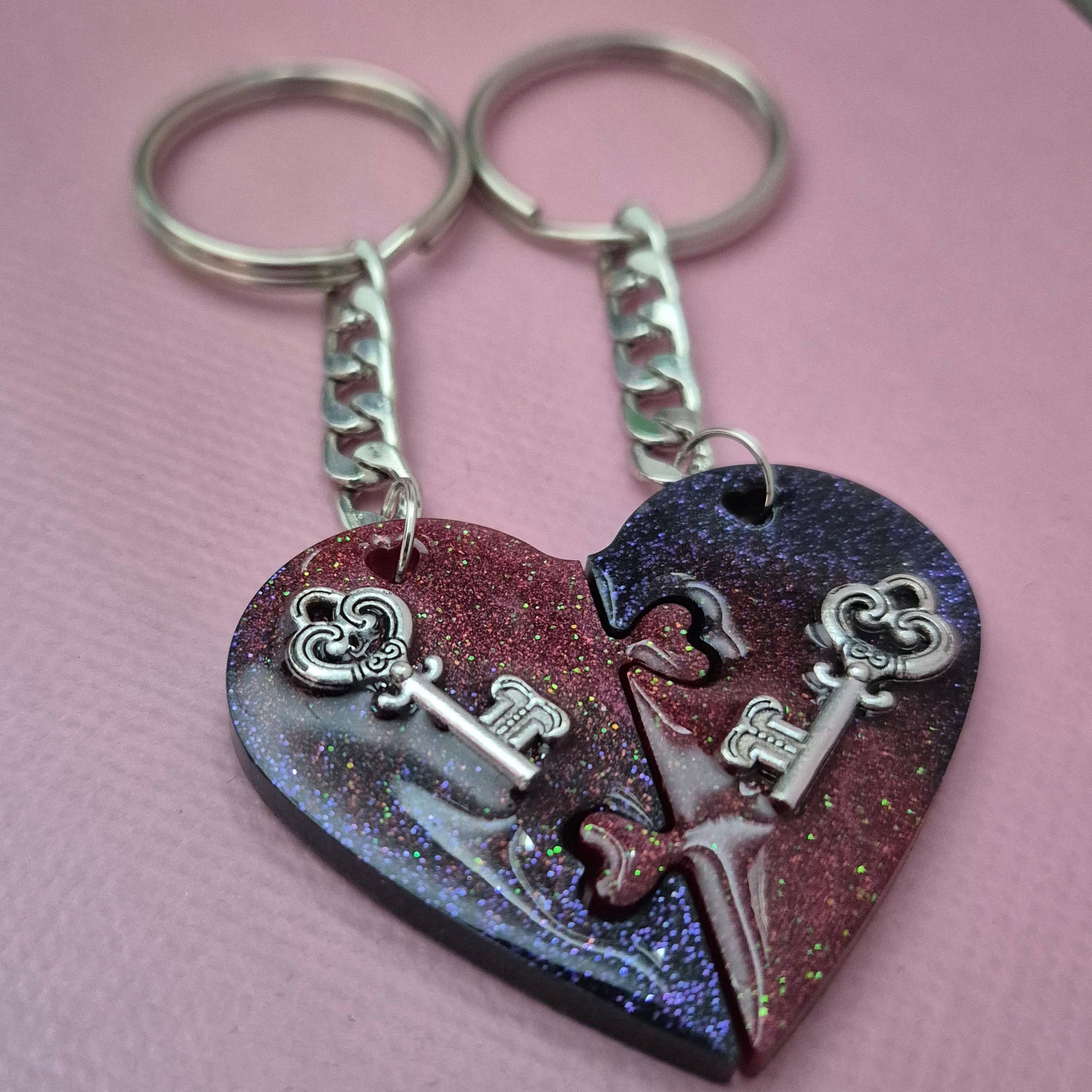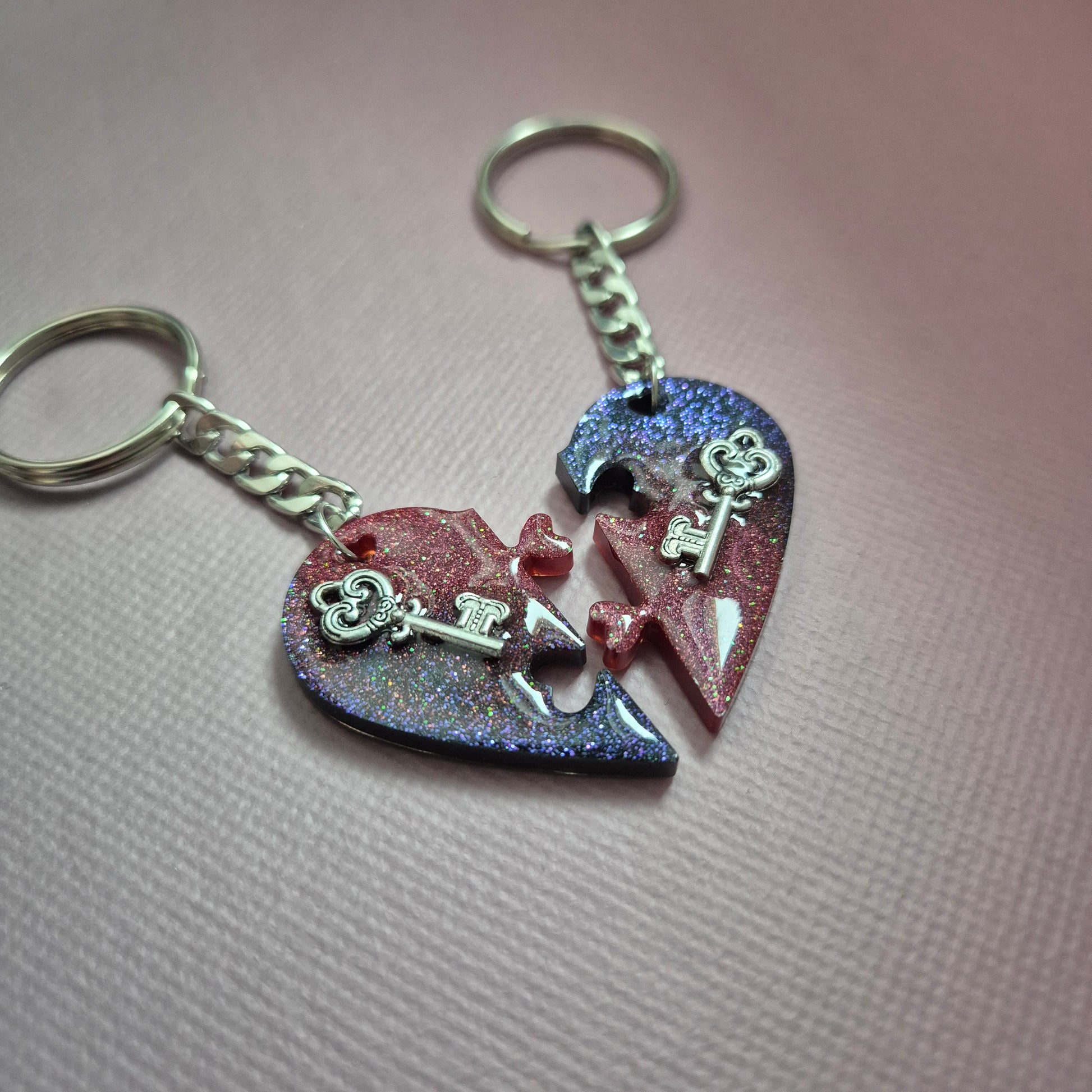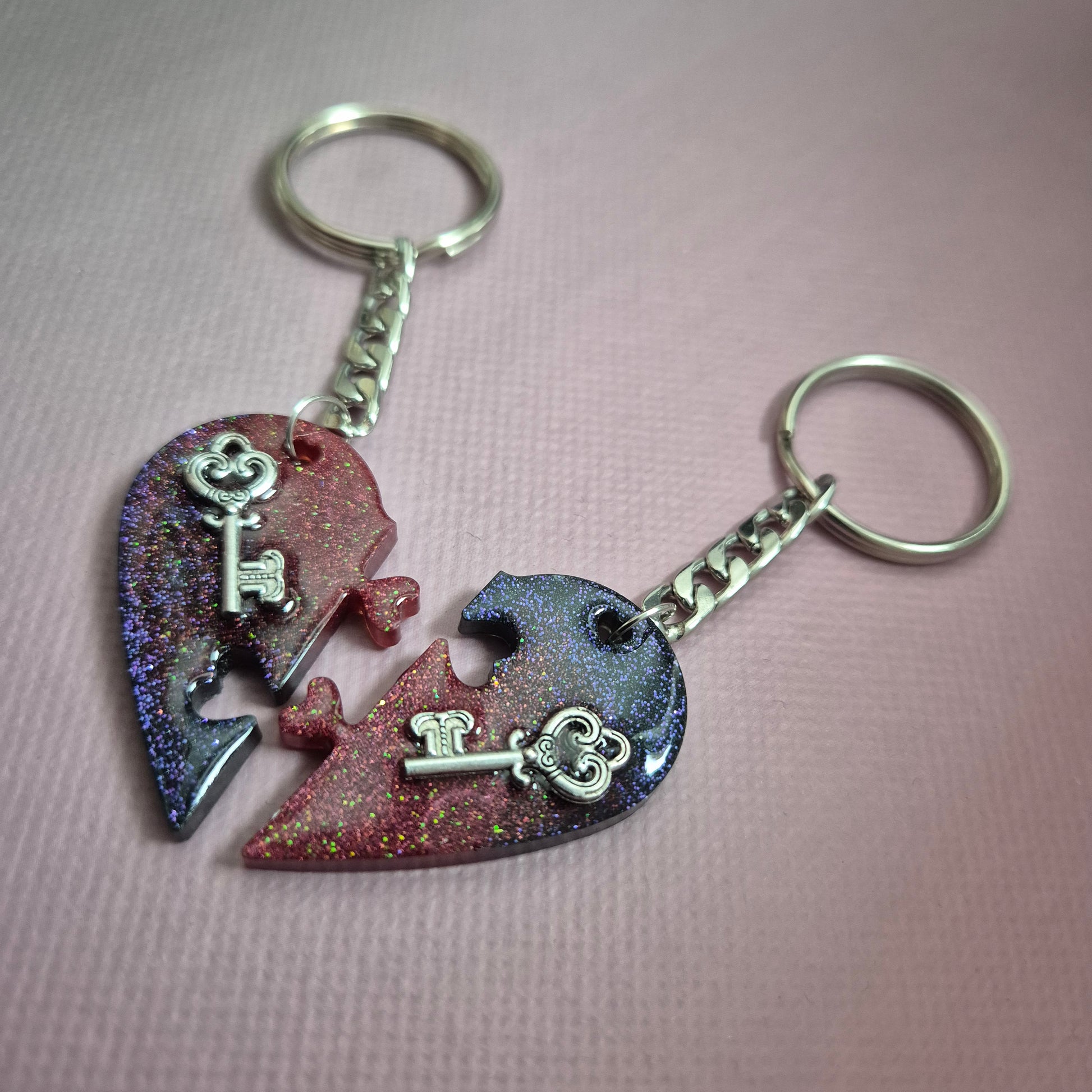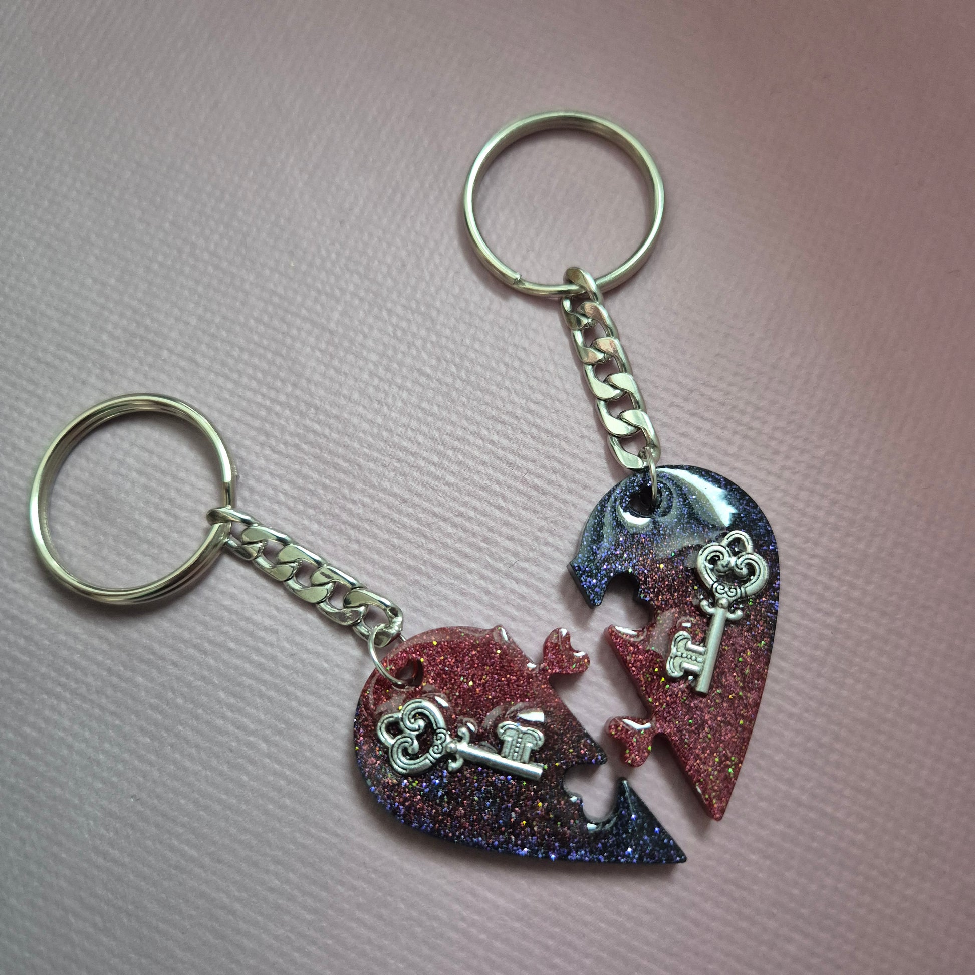 Verleihe eurer Verbindung eine ganz persönliche Note mit diesem voneinander untrennbaren Set! Diese zwei Schlüsselanhänger bilden zusammen ein perfektes Herz und sind ein wunderbares Symbol für Zusammengehörigkeit – das ideale Geschenk für dich und einen Lieblingsmenschen.
