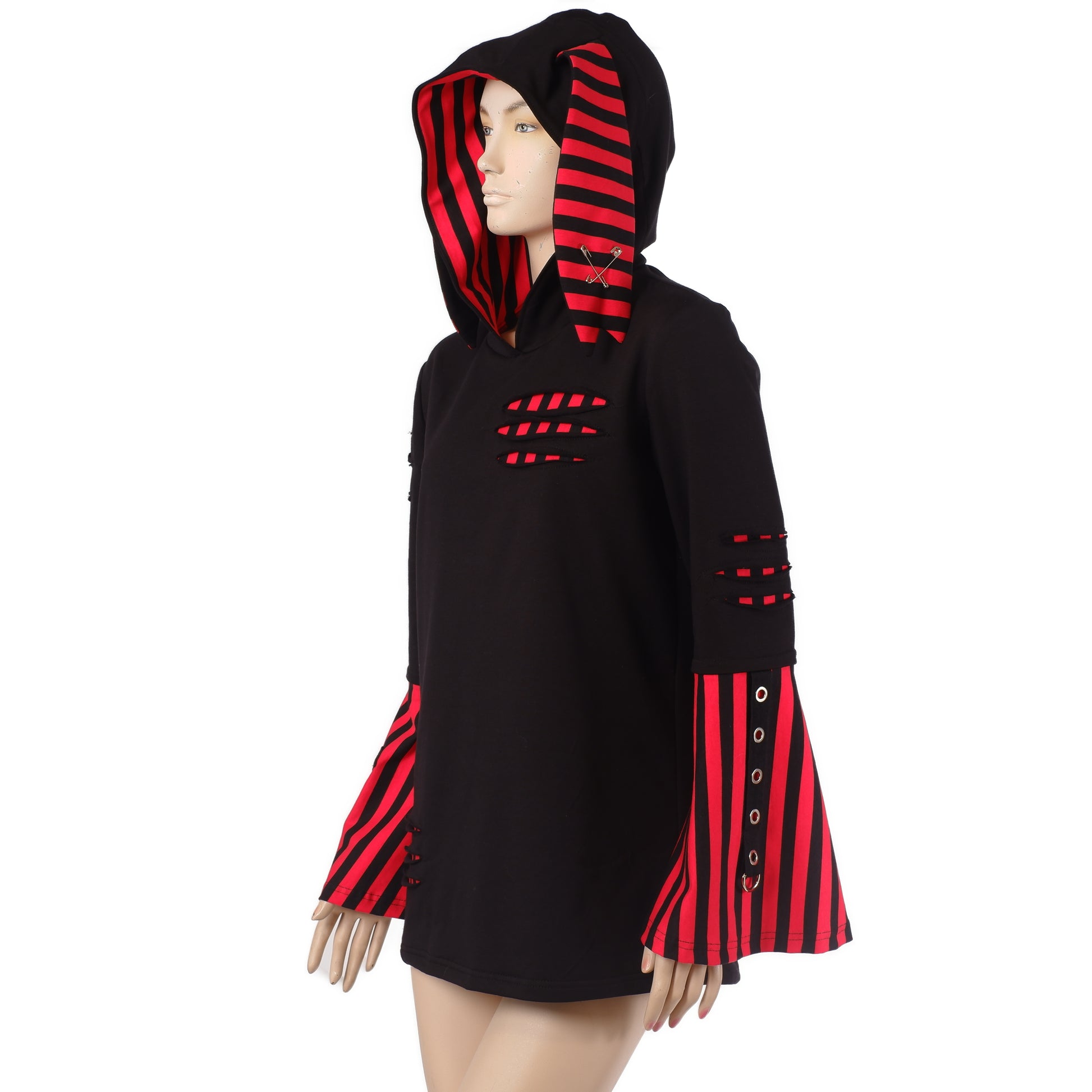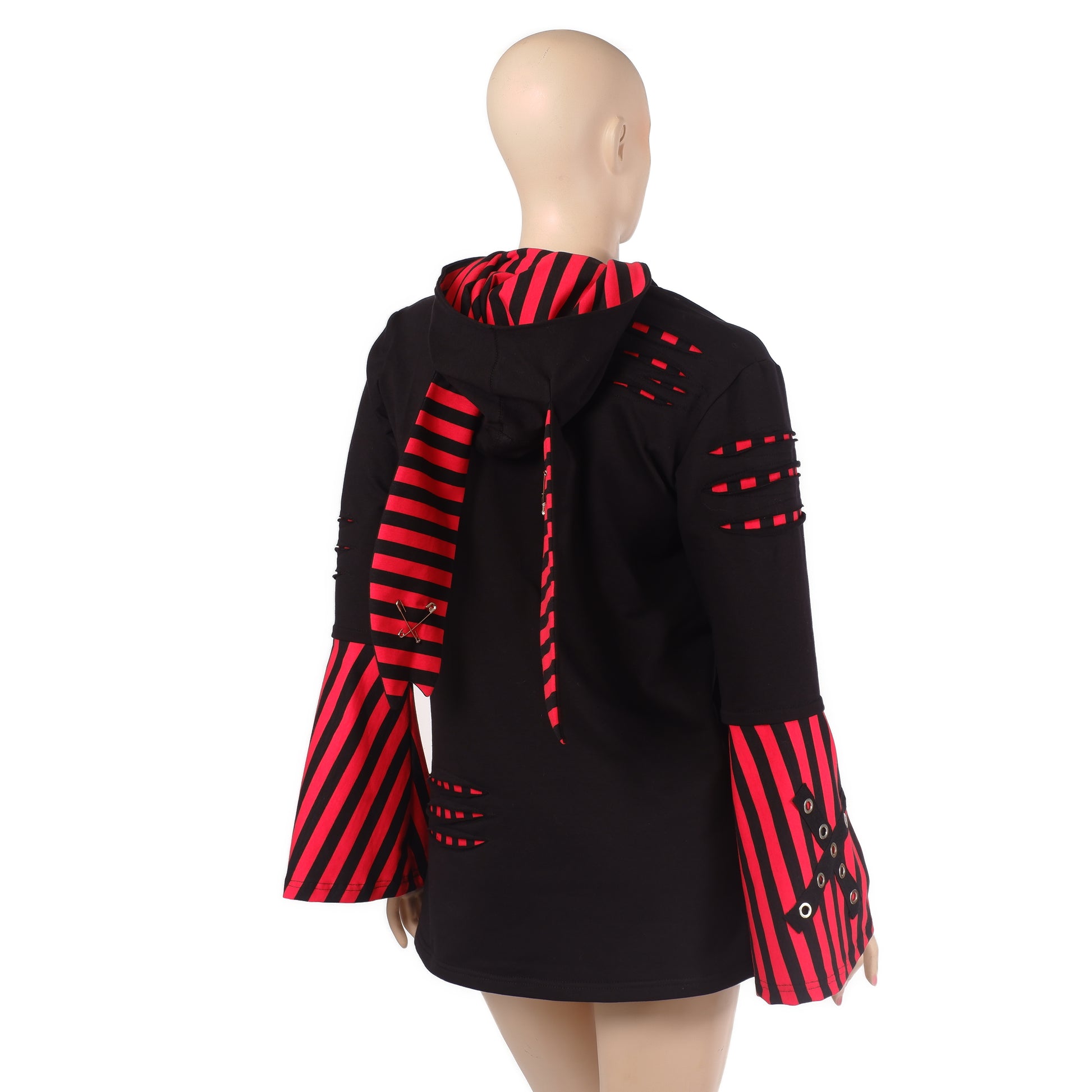 Hoodie – "Shredded Rabbit" (Rot-Schwarz Streifen)
